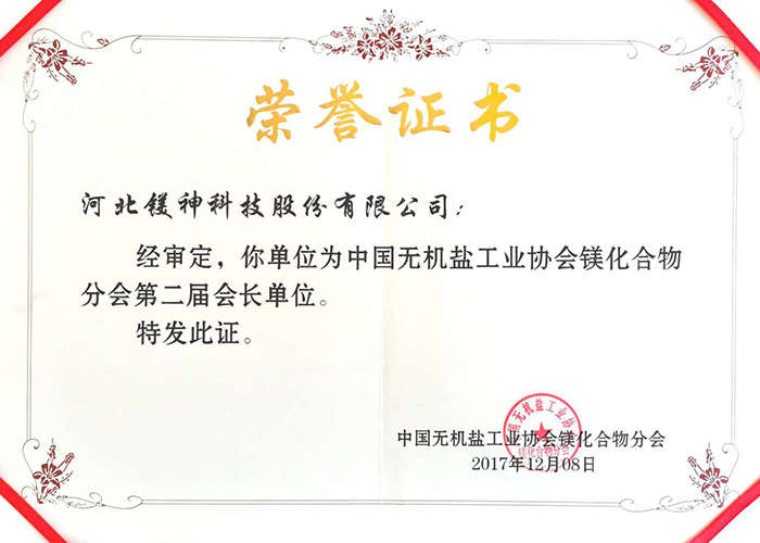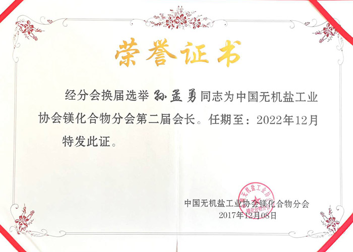 中國無機鹽工業協會鎂化合物分會第二屆分會會長