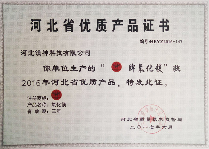 河北省優質產品證書