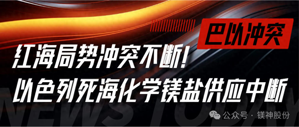 據可靠消息,也門胡塞武裝發言人葉海亞·薩雷亞當地時間27日稱,胡塞武裝對美國海軍部署在紅海的2艘驅逐艦發動了無人機襲擊,并準確擊中目標,紅海緊張局勢再度升級。且胡塞武裝發言人葉海亞·薩雷亞之前也宣布向所有向以色列輸送貨物的船只發起襲擊。受此影響,死海化學溴業有限公司(DEAD SEA BROMINE COMPANY LTD)鎂鹽生產中斷、產品運輸成本暴漲,給全球鎂鹽供應鏈帶來不良影響。